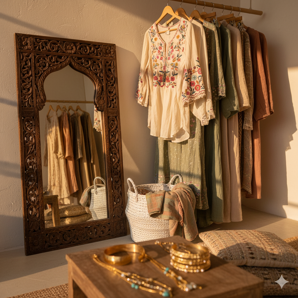 Tienda de moda, hogar y bienestar de estilo boho chic inspirado en la India.